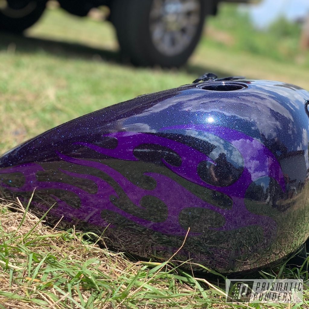 Hd Motorcycle Tank Finished In Illusion Purple Ink Black Casper Clear And Chameleon Sapphire Teal Prismatic Powders